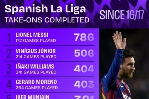 16-17赛季以来西甲过人榜: