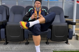 体育资讯10月10日讯 挪威球星哈兰德正在随国家队备战世预赛,在社交媒体上,他晒出了自己在训练场边手捧球鞋的照片,依然是一如既往的严肃风,看起来他即将开启一场训练课。