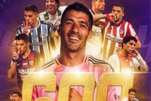 体育资讯10月12日讯 在今天美职联常规赛迈阿密国际4-0亚特兰大联的比赛中,苏亚雷斯打入一计精彩的远射,这是他职业生涯的第600球。