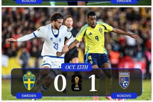 体育资讯10月14日讯 世预赛欧洲区小组赛B组第4轮,世界排名第91的科索沃客场1-0击败世界第32瑞典,本届世欧预双杀瑞典一球未失。