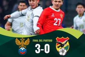 本场比赛,萨杜拉耶夫、米兰丘克和伊万-谢尔盖耶夫分别为俄罗斯建功。在场面上,俄罗斯45%的控球率稍微处在劣势,玻利维亚全场有着高达18脚射门但仅有4次射正,而俄罗斯15次射门8次射正。