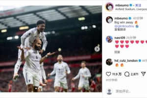 赛后,此役闪击破门的姆贝莫更新社媒庆祝胜利,他写道:关键的客场胜利🔥