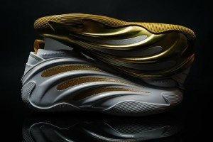非常符合今天戒指之夜的主题,白金的鸳鸯配色。细节上有标志性的庆祝手势,鞋底还有总冠军奖杯图案,鞋垫处则有偶像科比的画像。