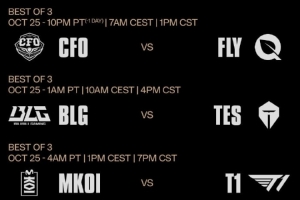 体育资讯10月24日讯 S15瑞士轮抽签,TES遭遇BLG,八强只有两支LPL队伍;