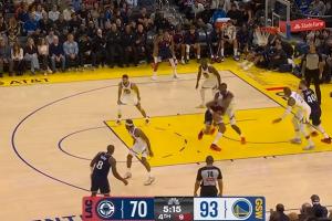 GIF-快船发球前换人投降!库里超远三分轰进!