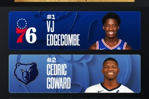 体育资讯10月30日讯 NBA官方公布了最新一期的NBA新秀榜,埃奇库姆排在第一。而灰熊的锡德里克-科沃德排名第二,迪伦-哈珀排名第三。