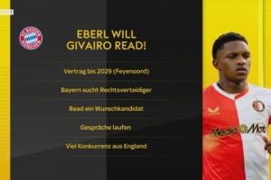 德国天空体育消息表示,拜仁正非常具体地关注吉瓦罗-雷德,这位年仅19岁的右后卫已经是荷甲费耶诺德的主力球员。由于表现出色,他在今年4月刚刚续约至2029年,不过依然有许多欧洲顶级俱乐部——尤其是来自英格兰的球队——对他非常感兴趣,拜仁也是其中之一。