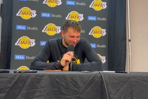 赛后,东契奇接受了记者采访。当被问及自己能否场均40分时,他说道:“那将会很难的。当对手越想包夹我的时候,我就越想去得分。”