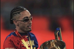 对于拉菲尼亚的遭遇,巴西人的巴萨队友阿劳霍显然没有袖手旁观。同样在社交媒体上,阿劳霍晒出了拉菲尼亚手捧奖杯的照片对其进行声援。